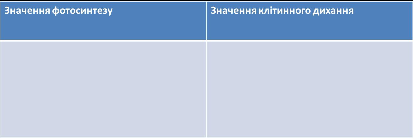 значення фотосинтезу: забезпечення енергією всіх живих істот на планеті, включаючи людину. Фотосинтез є основним є основним джерелом біологічної енергії