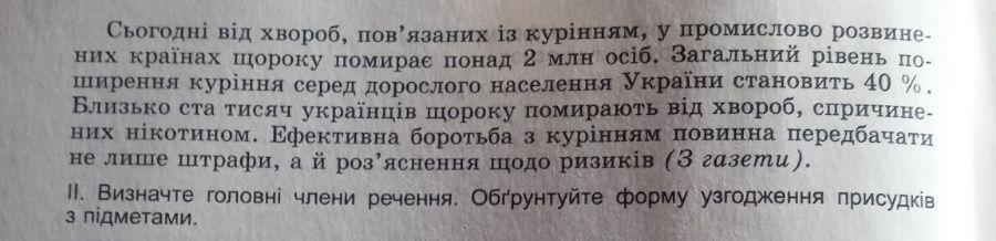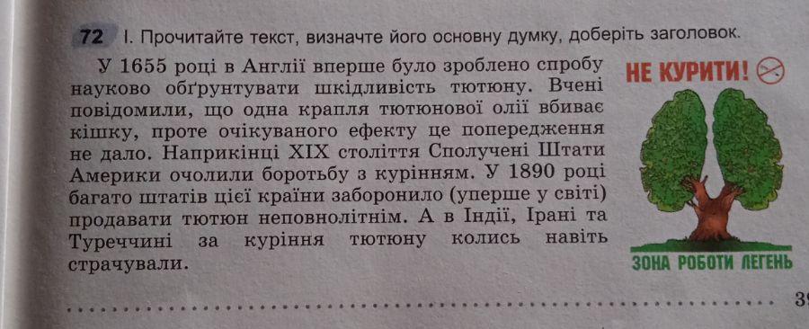 Відповідь:Основна думка: Куріння шкідливе для вашого здоров'я, викликає хвороби.Заголовок: Шкідливість куріння.