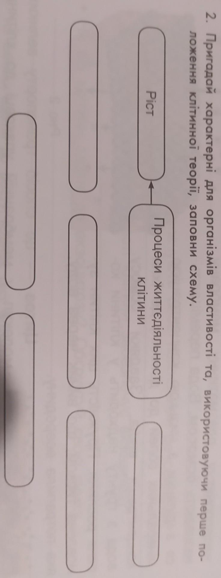 2. Пригадай характерні для організмів властивості та використовуючи перше по- ложення клітинної, заповни схему. Процеси життєдіяльності Ріст клітини