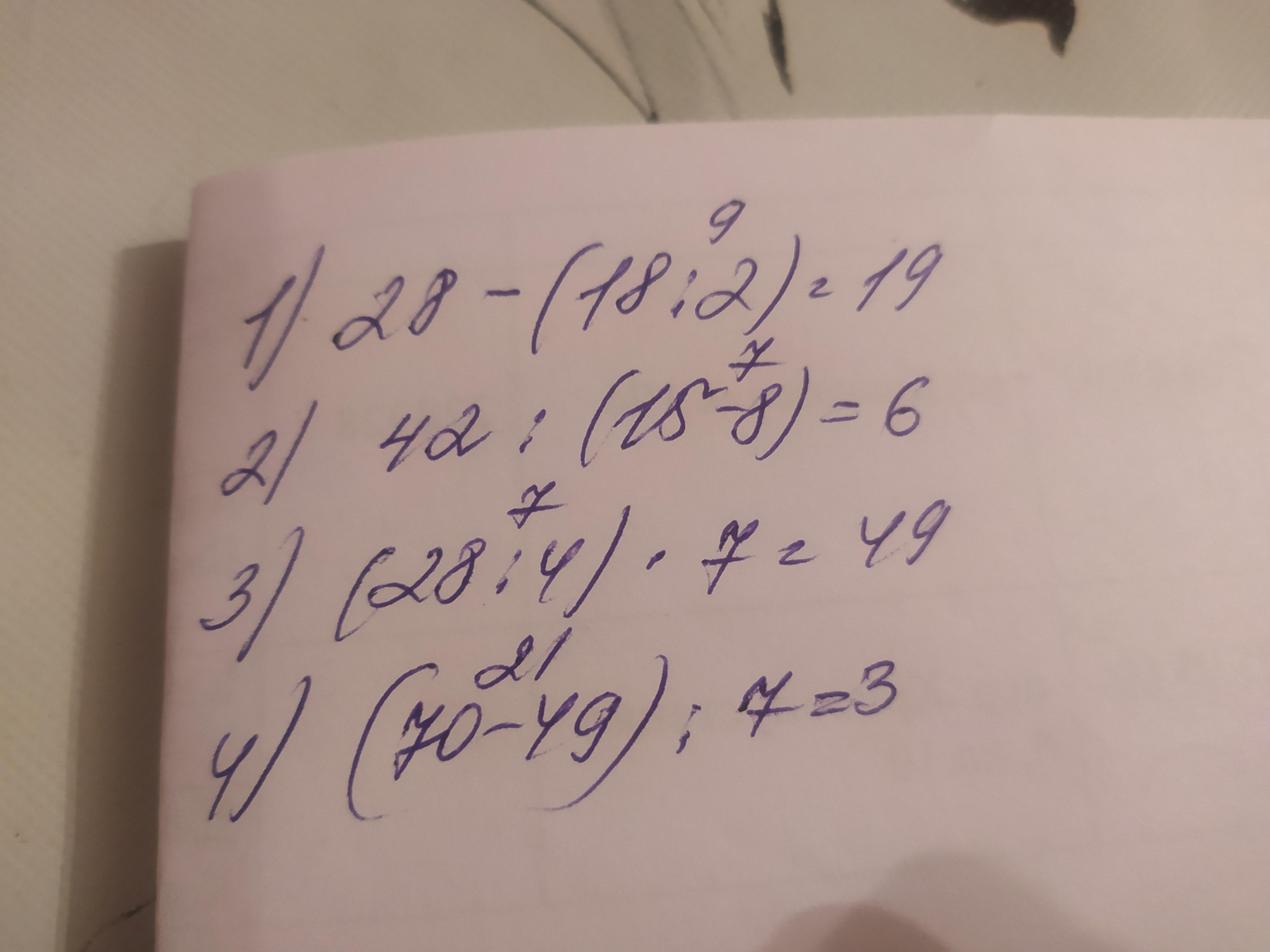 Делитель 7, а делимое выражено разностью чисел 70 ; 49.