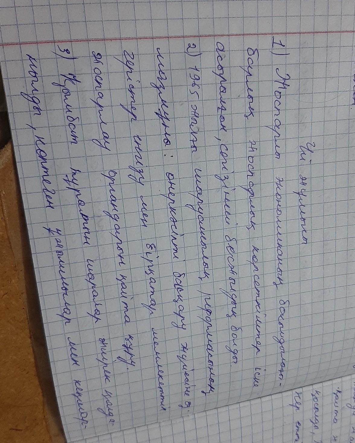 Жоспарлы экономиканың басымдықтарын атаңдар. 2) 1965 жылғы шаруашылық реформасының мазмұны. Оның жарым-жарты- лай жүргізілуі неден көрінді? 3) Ауылшаруашылығы тиімсіздігі деңгейінің себептері неде? 4) 70-жылдардағы ауылшаруашылығының дамуындағы табыстар мен сәт- сіздіктерді сипаттаңдар. 5) 70-80-жылдардағы ғылыми-техникалық лықты ықпалы болды? прогрестің экономикаға қаншалықты ықпалы болды