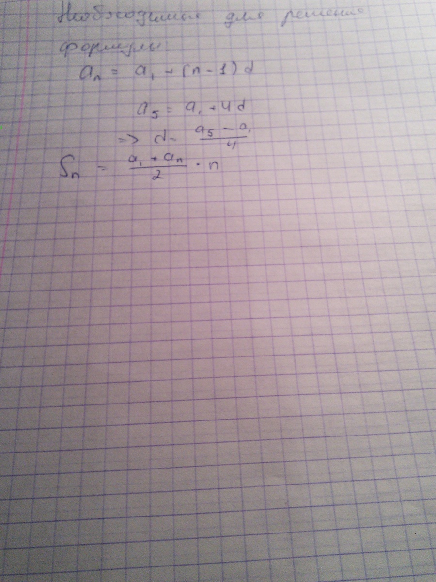 известно первый и пятый члены арифметической прогрессии. Найти величину члена прогрессии с номером n и сумму n членов. написать это в программе паскаль.