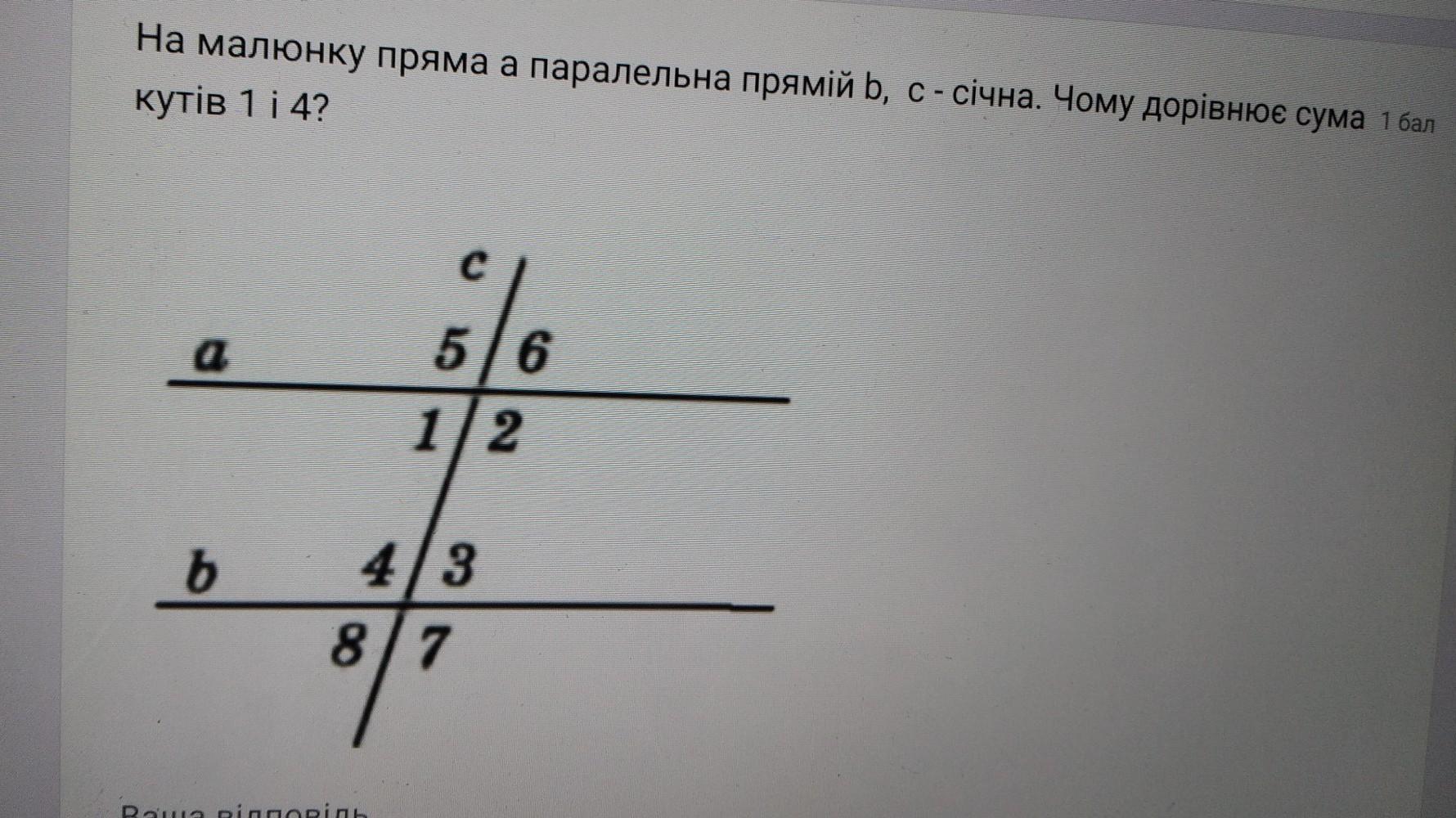 Углы 1 и 4 (2 и 3 тоже) у нас внутренние односторонние, а по правилу - их сумма всегда равняется 180°.