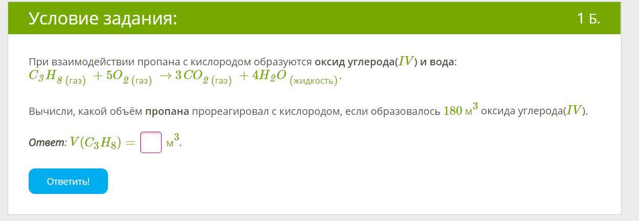 2) V(C3H8) = V(CO2) / 3 = 180 / 3 = 60 м3.