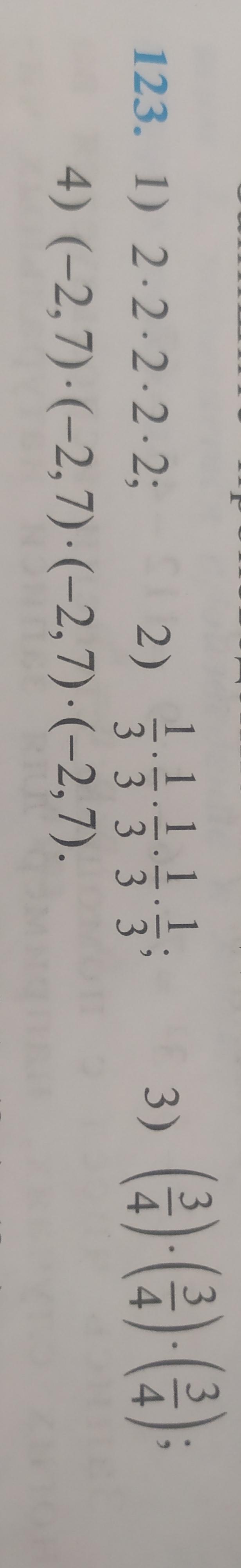 4) (-2,7) * (-2,7) * (-2,7) * (-2,7) = (-2,7)⁴ = 53,1441