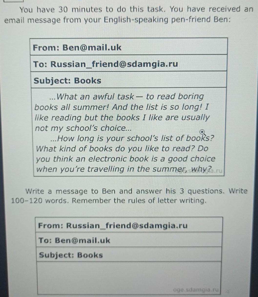 СРОЧНО!!! ДАМ 100 БАЛОВ,помогите написать электронное письмо минимум 100 слов и не больше 120