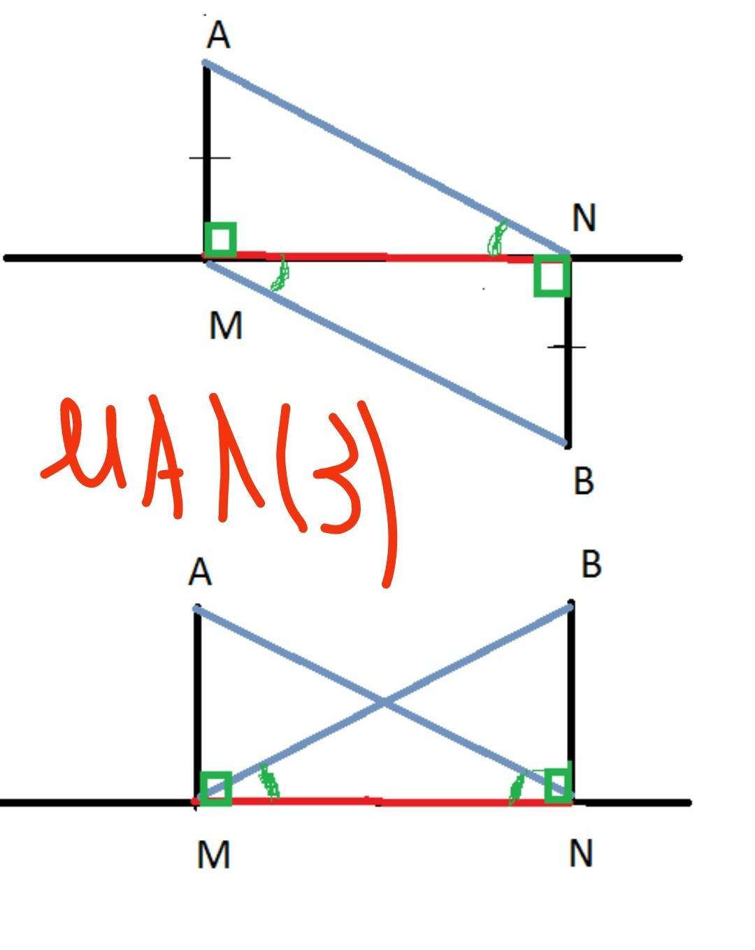 3) малюнок (3) пояснення: Прямоугольные треугольники AMN и BMN