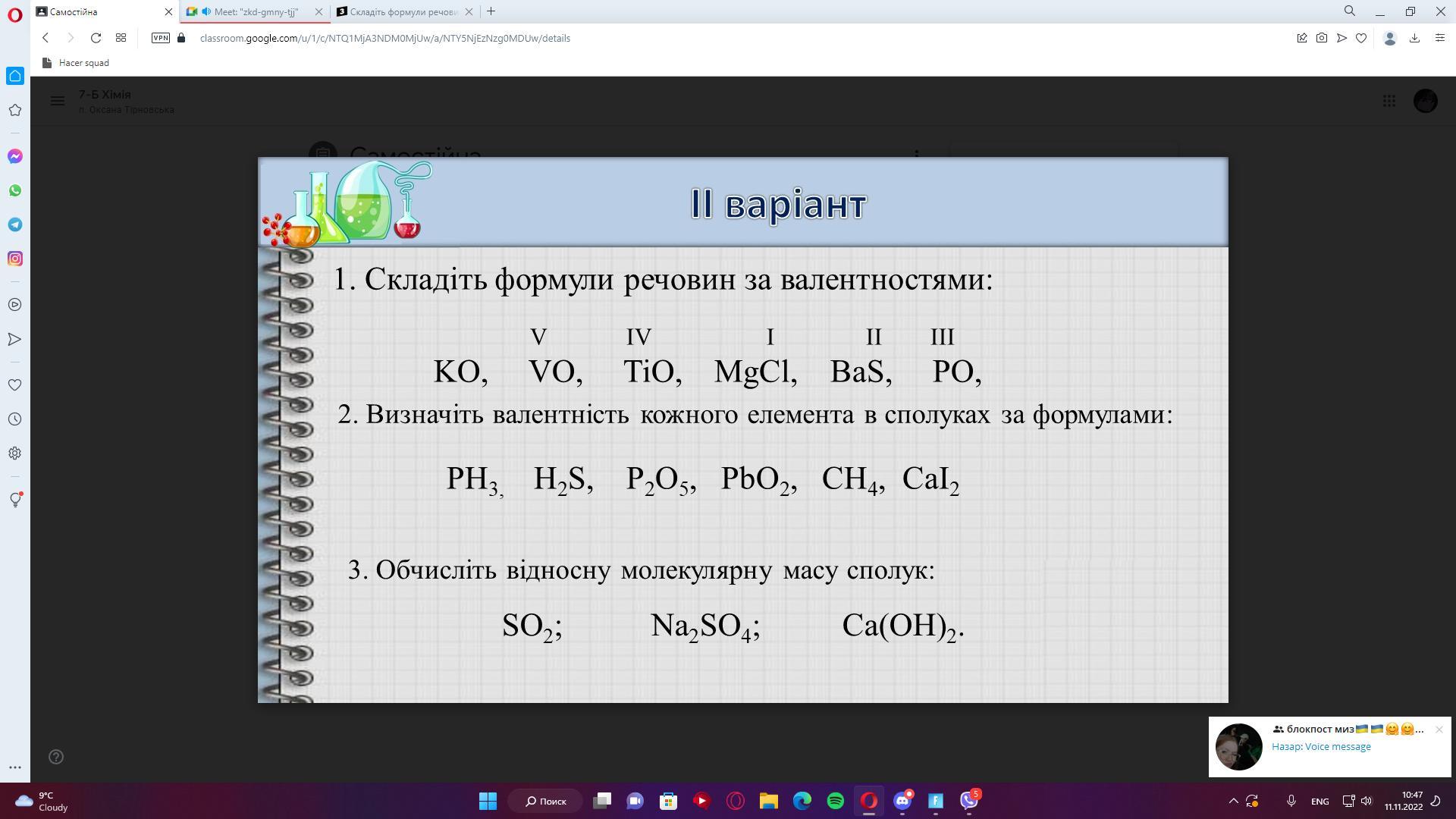 складіть формули речовин за валентністю пожалуйста помогите 100 баллов