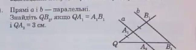 а). Прямі а і ь - паралельні. Знайдіть QB., якщо QA, = A B i QA, = 3 см. B. A₂