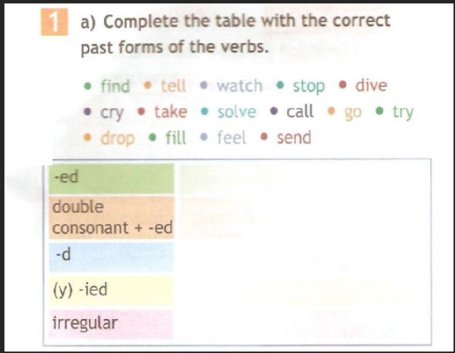 Нужно распределить глаголы по группам в зависимости от способа образования формы Past Simple.