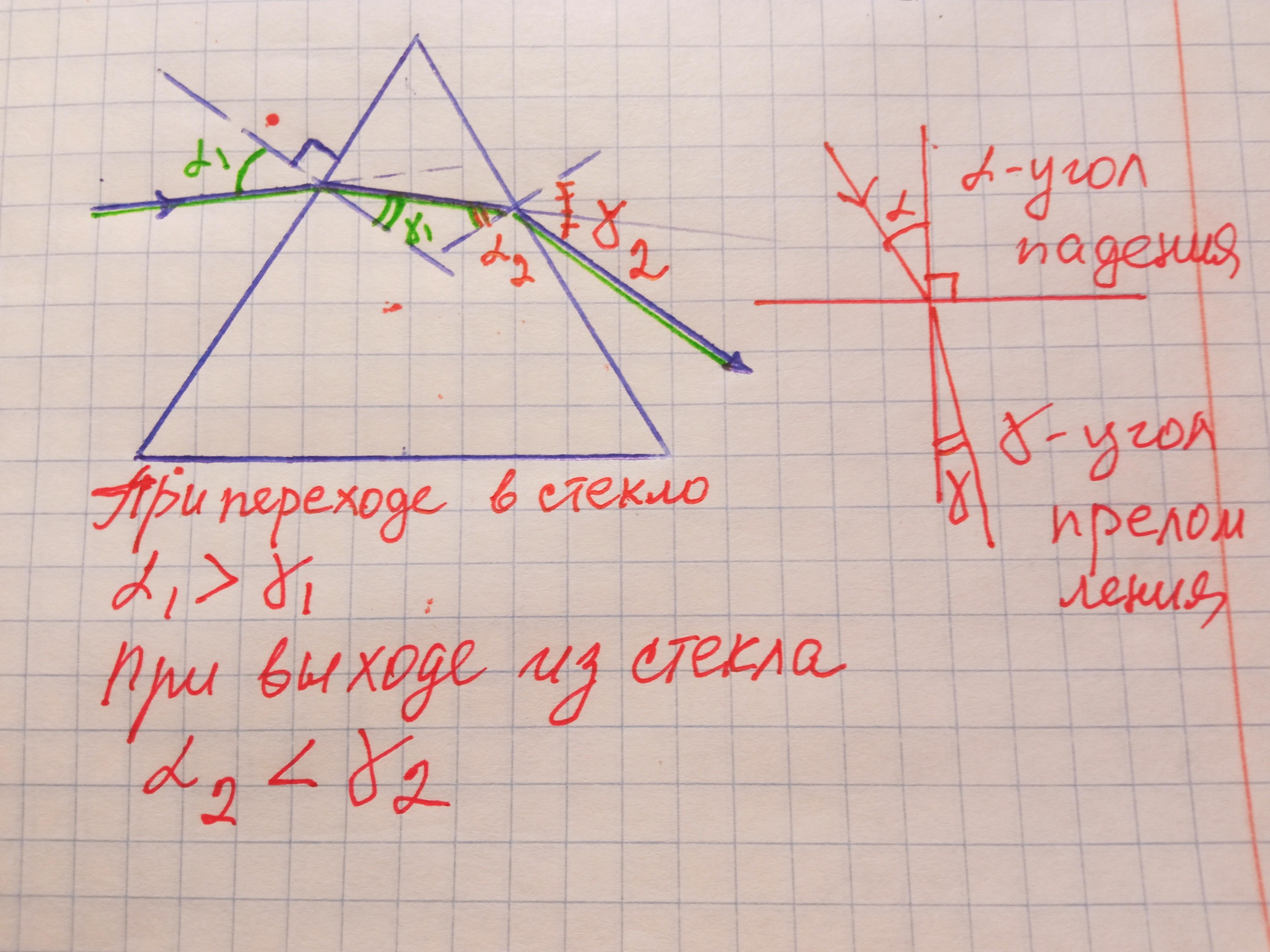 призма прижимает луч к своему основанию.