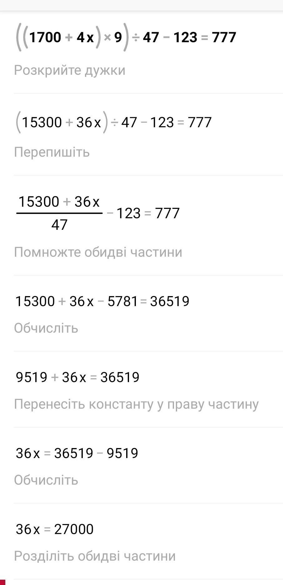 На фото повне розв'язання прикладу в кінці просто напишеш x=750.