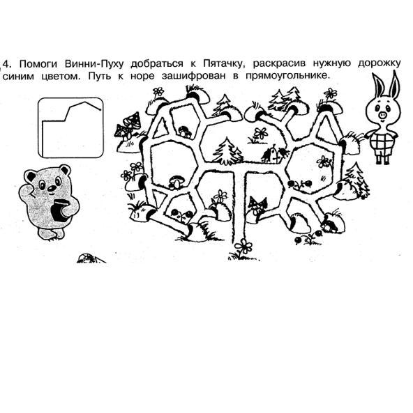 4. Помоги Винни-Пуху добраться к Пятачку, раскрасив нужную дорожку