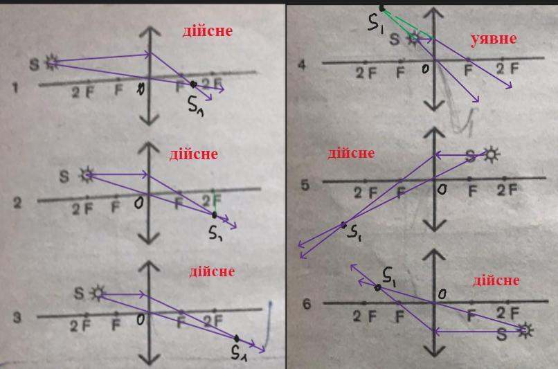 Пояснення: Для побудови зображення в лінзі використали два найпростіші в побудові промені: