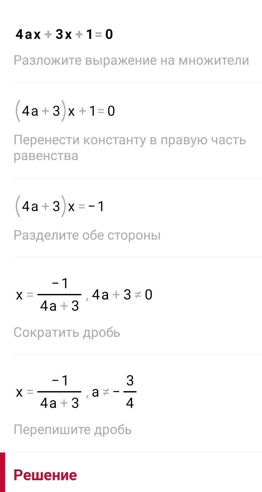 При яких значеннях параметра а рівняння x² - 4ax + 3x + 1 = 0 має два рiзнi дiйснi корені?