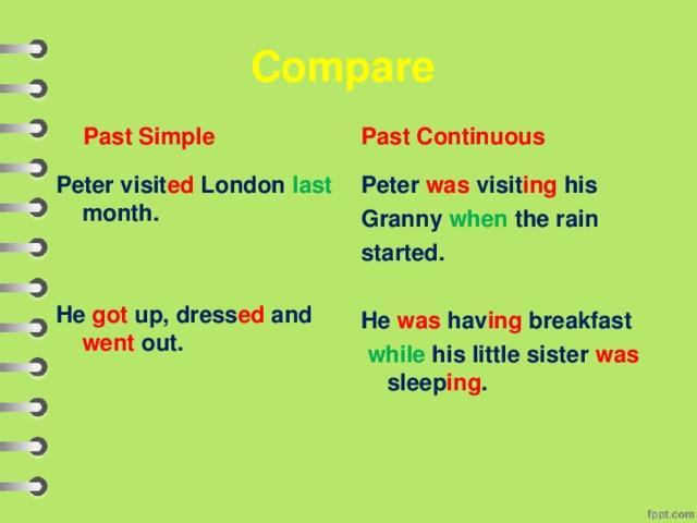Время Past Continuous употребляется, чтобы описать действие в процессе, которое было прервано другим действием, которое употребляется в Past Simlpe.