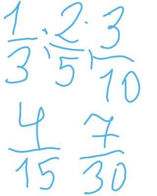 7/30 => 4/15 =>3/10 => 1/3 => 2/5