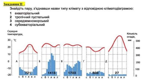 ПОМОГИТЕ ПЖ! СРОЧНО!Знайдіть пару, з'єднавши назви типу клімату з відповідною кліматодіаграмою: 1 екваторіальний 2 тропічний пустельний 3 середземноморський 4 субекваторіальний.