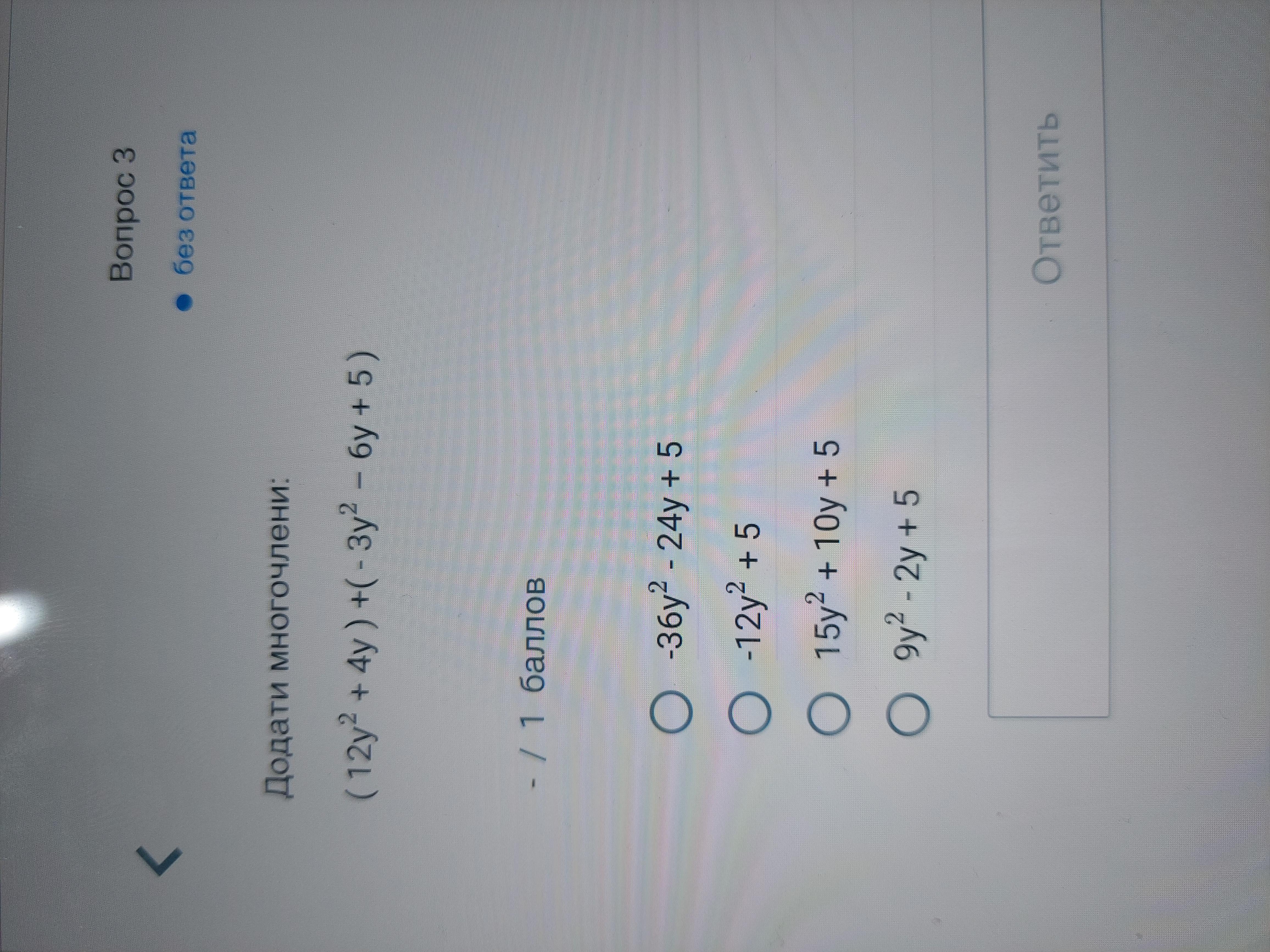 Розкриємо дужки та зведемо подібні доданки: 12y²+4y-3y²-6y+5 = 9y²-2y+5.