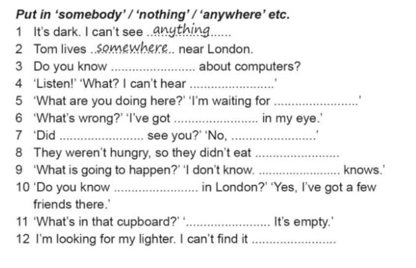 7) somebody, anybody.