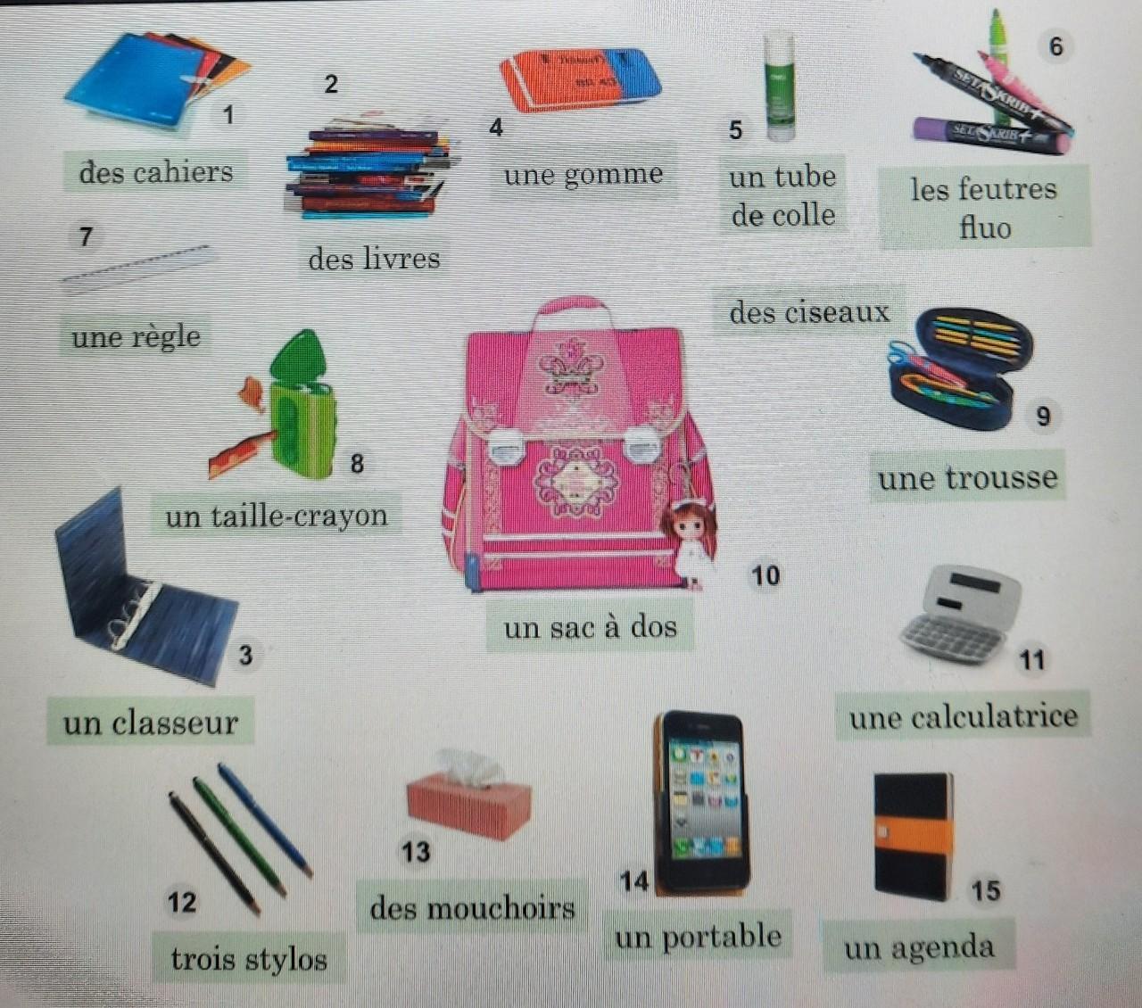 Запиши назви шкільного приладдя в алфавітному порядку.