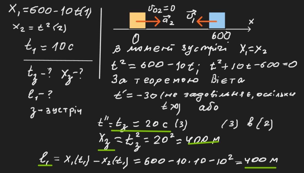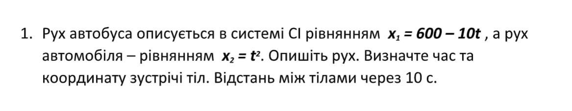 1-2)Опишіть рух. Визначте час та координату зустрічі тіл.