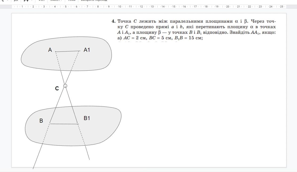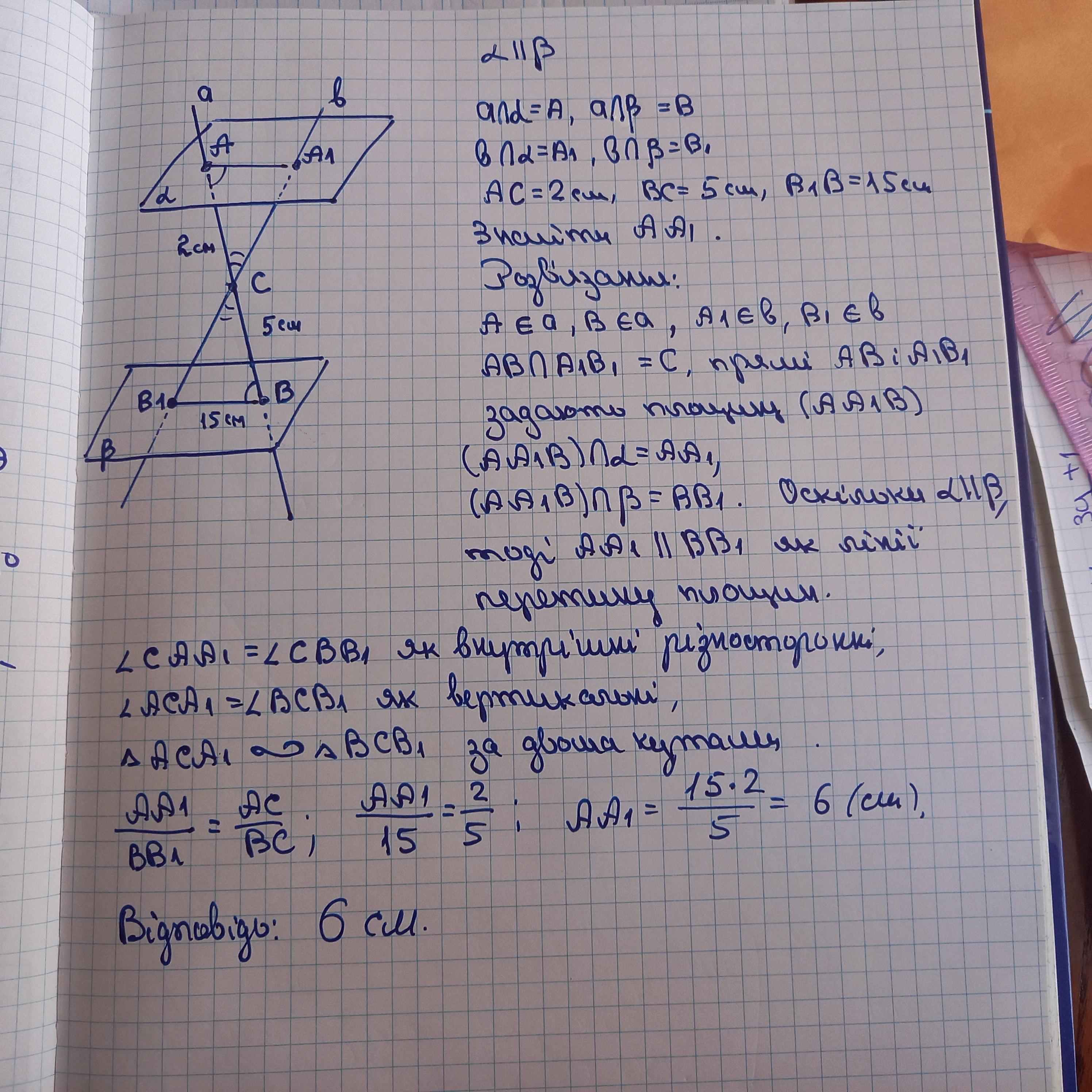 Важливо правильно за умовою виконати побудову і правильно позначити точки перетину прямих з площиною. В і В1 у вас невірно позначені. Треба поміняти місцями.
