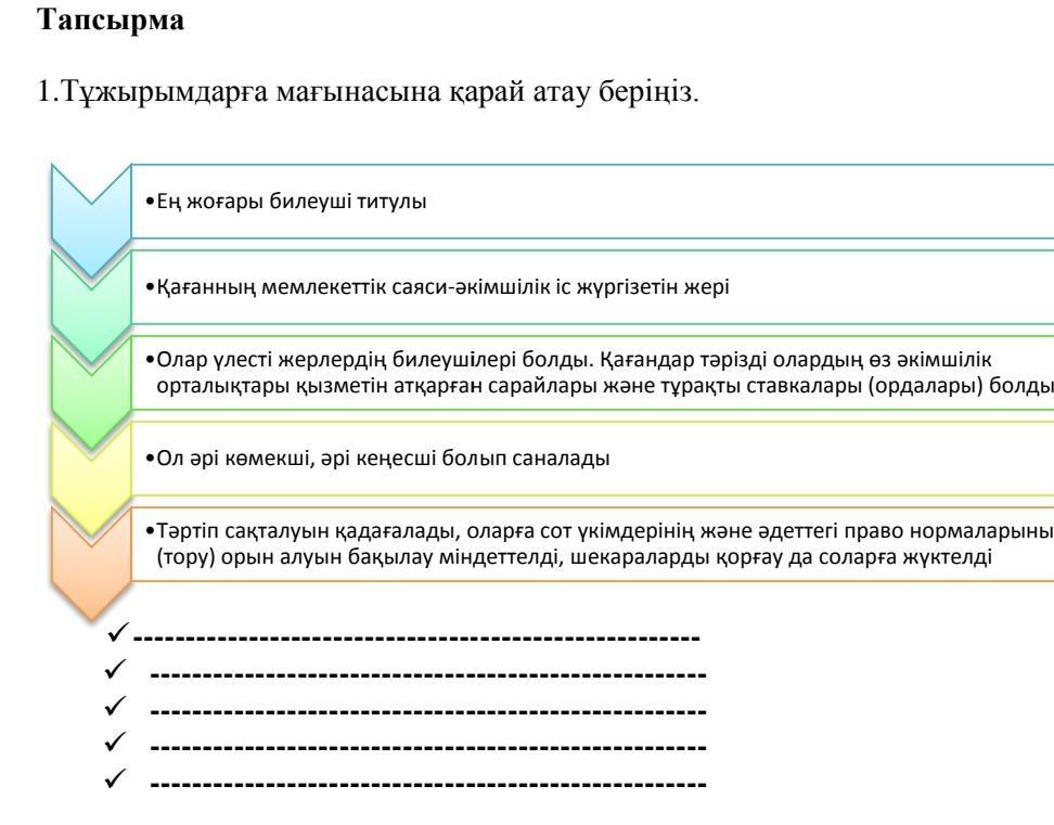 Ханның мемлекеттік саяси-әкімшілік іс жүргізетін орны орда деп аталған.Жоғарғы өкімет билігі қағанның (хан) қолында болған.