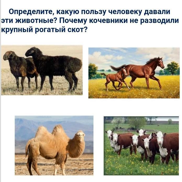 Определите, какую пользу человеку давали эти животные? Почему кочевники не разводили крупный рогатый скот? даю 10 баллов