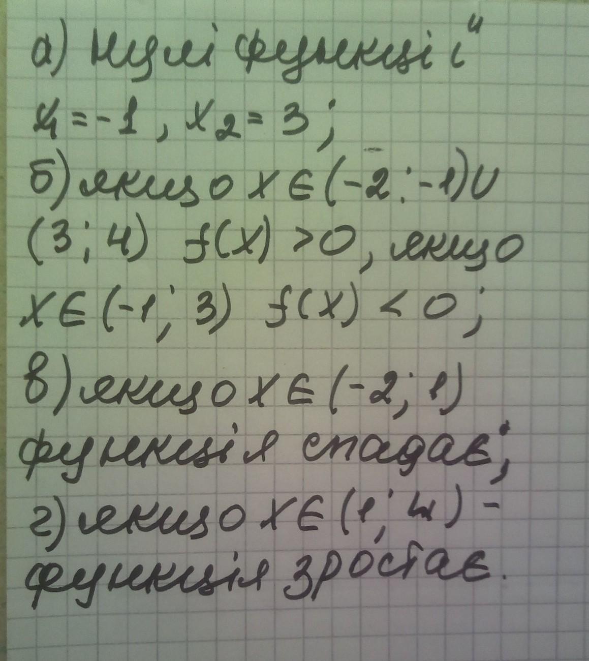 Запиши властивості функції за рисунком