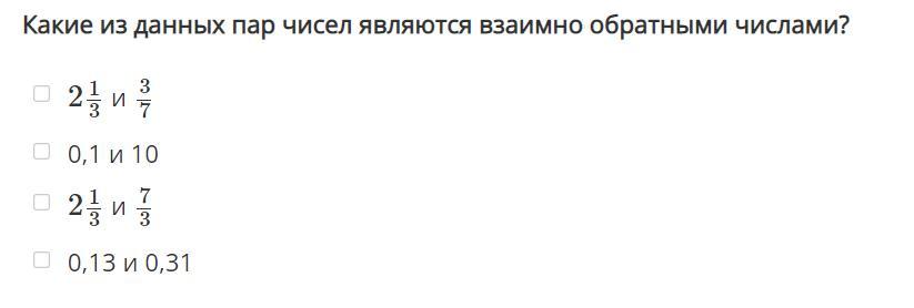 2 1/3 = 7/3, 3/7 и 7/3 при умножении дают 1: поэтому они обратные
