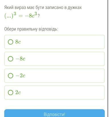 -2 с, тому що -2 у 3 степені якраз -8, і с у кубі