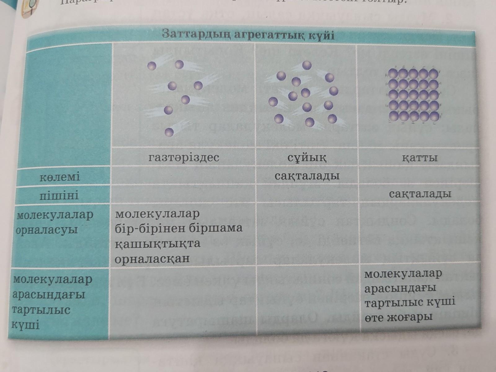 Заттардың агрегаттық күйі кесте, жаратылыстану,5 сынып.Пожалуйста помогите фото тут↑