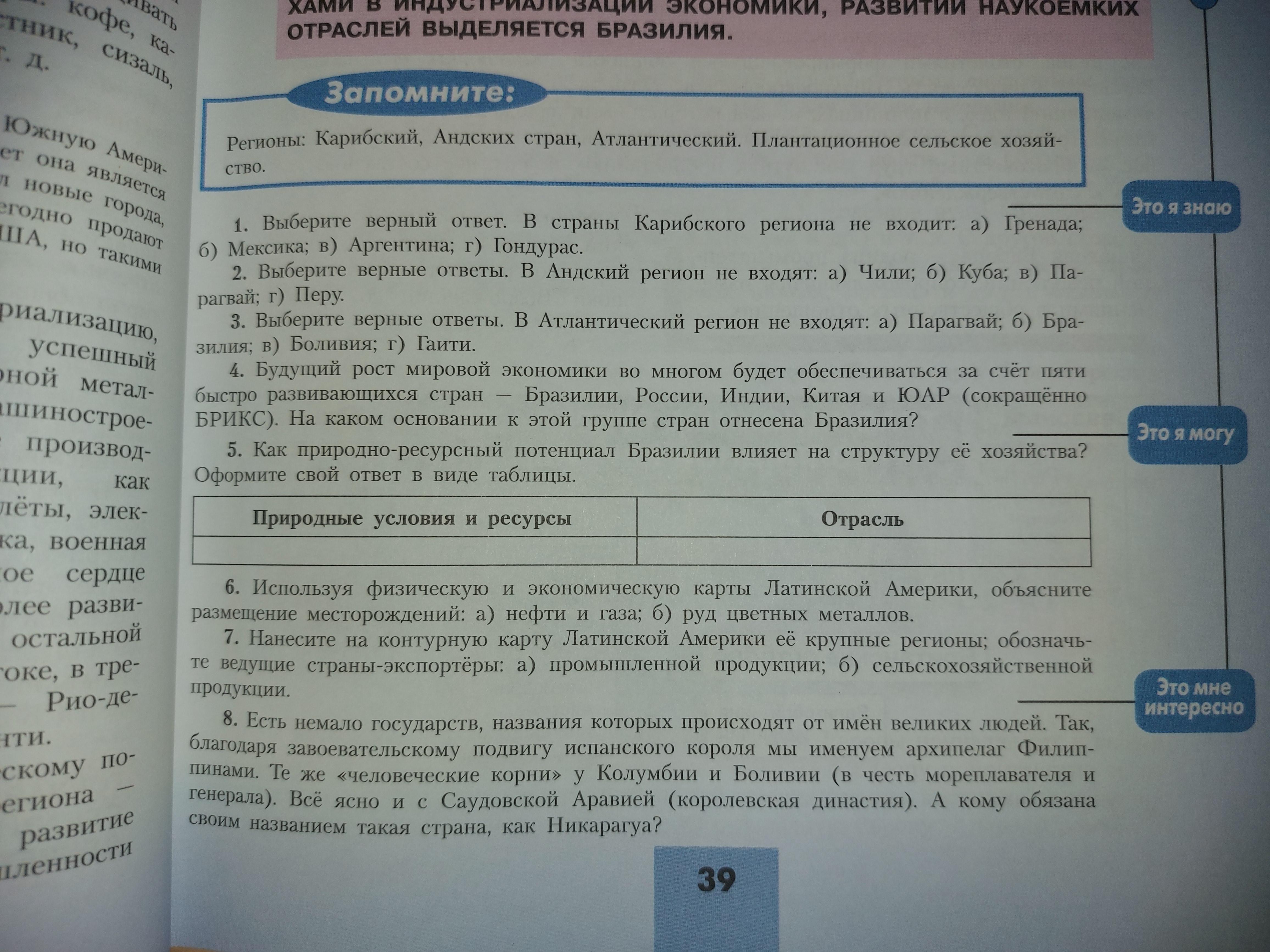 6 - а) Карибские страны, Венесуэла, Эквадор б) Бразилия, Чили, Перу, Боливия