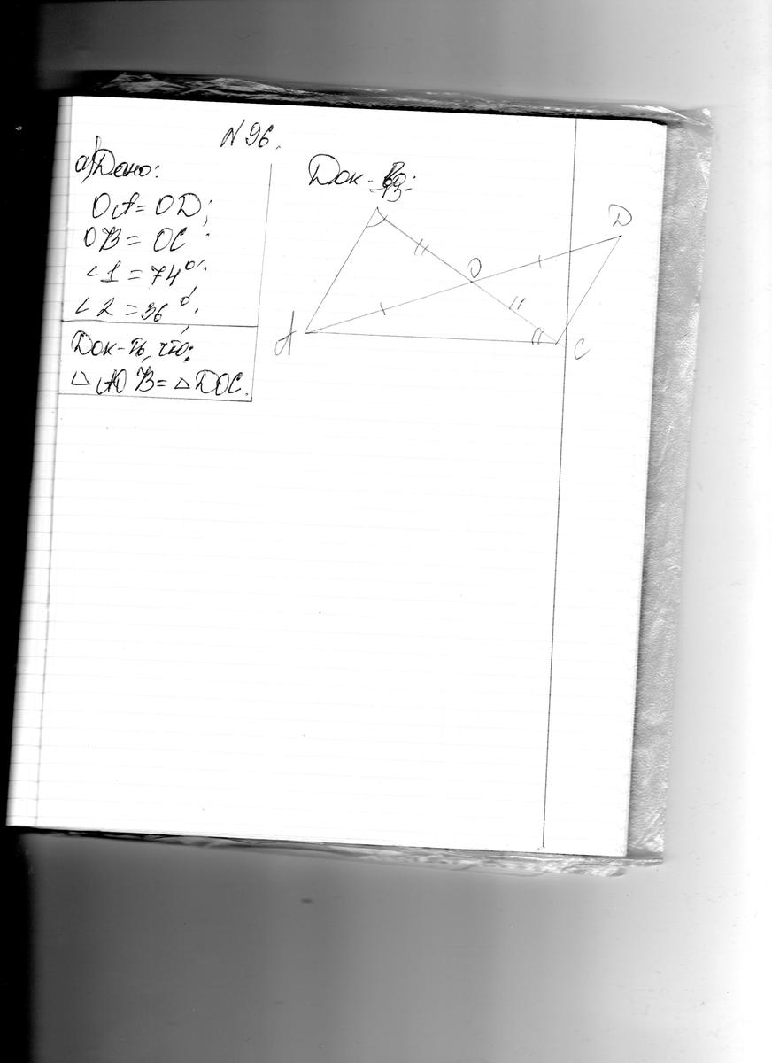 НА РИСУНКЕ OA=OD,OB=OC,<1=74 ГРАДУСОВ ,<2=36 ГРАДУСОВ.