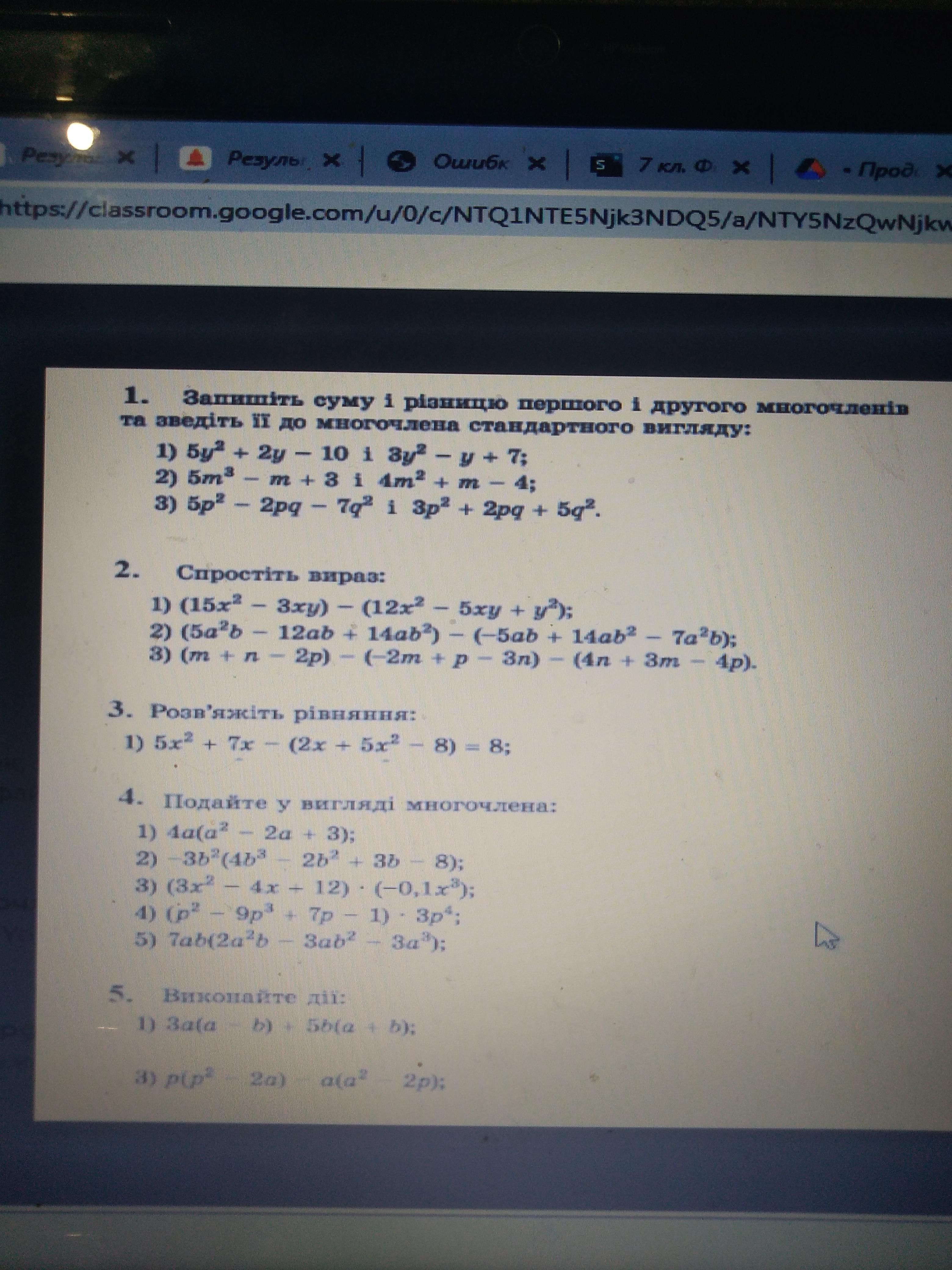 1) 5у²+2у-10 + 3у²-у+7 = 8у²+у-3;