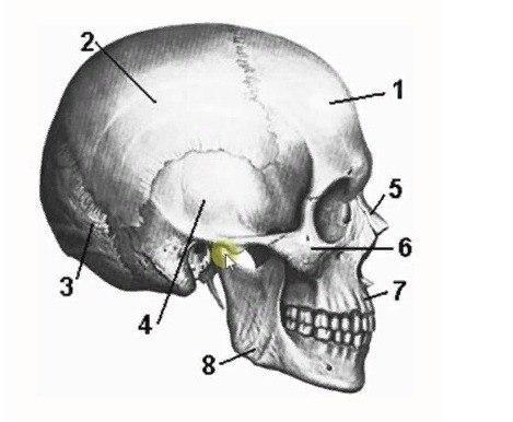 Выберите три верно обозначенные подписи к рисунку "Строение черепа"
