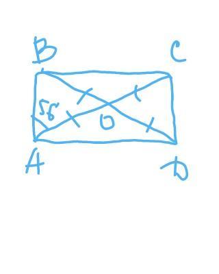 диагонали прямоугольника АС и ВD равны и точкой пересечения O делятся пополам, значит