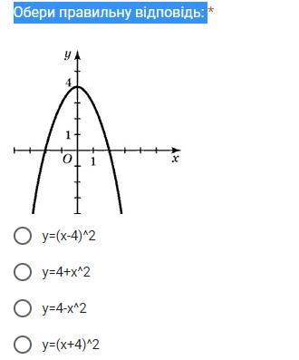 так як вершина параболи піднята на 4 одиниці вгору по осі ОУ, то то в функції має бути +4,