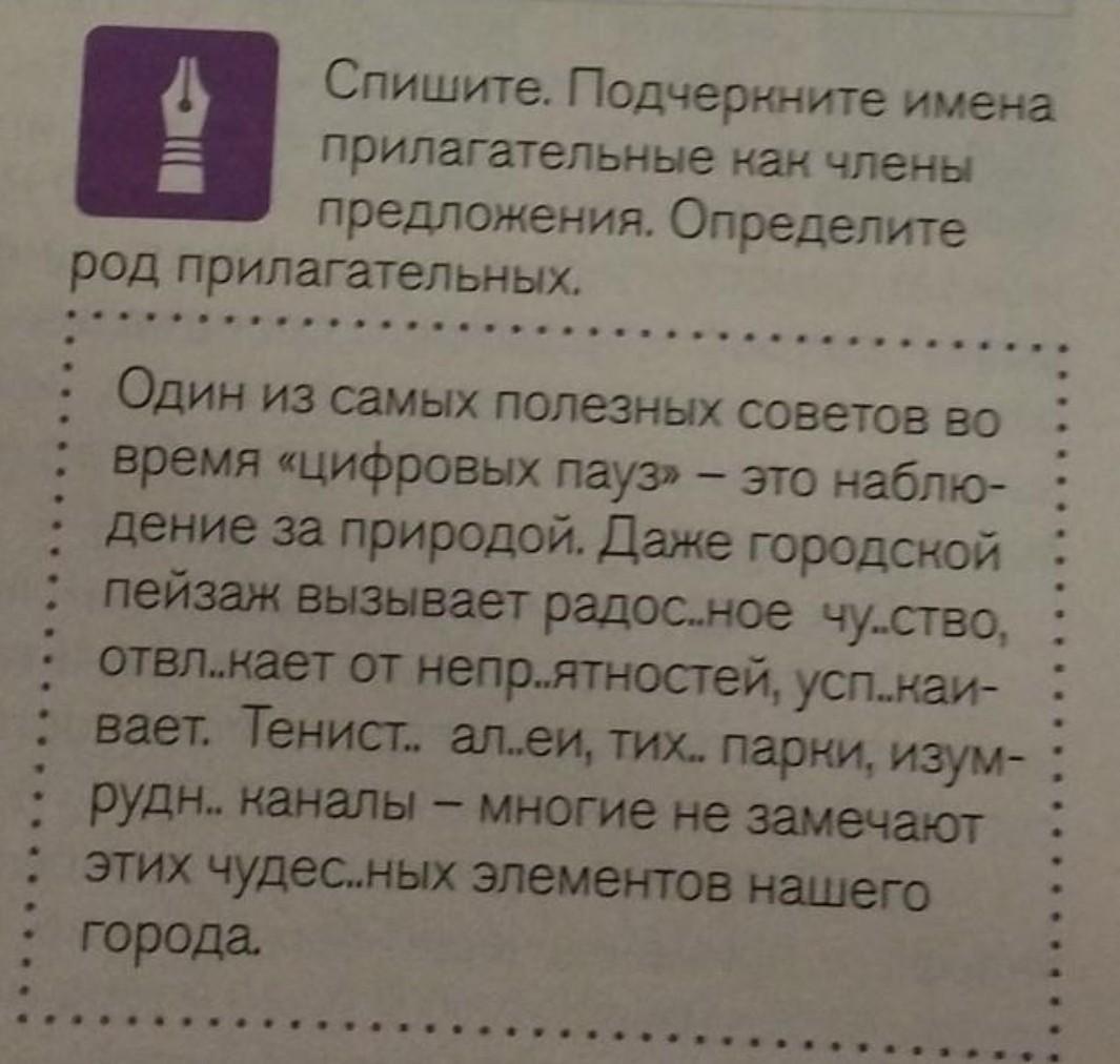 Спишите.Подчеркните имена прилагательных как члены предложения. Определите род прилагательных.