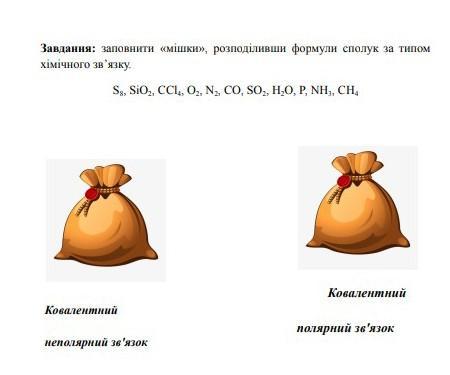 Ковалентний полярний: SiO2, CCl4, CO, SO2, H2O, NH3, CH4