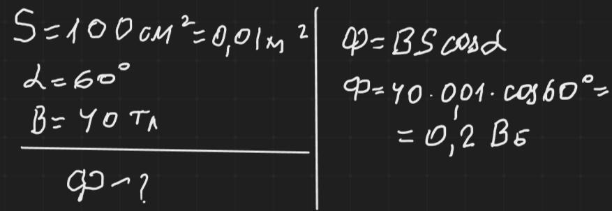 Обрахуйте магнітний потік однорідного поля, якщо кут між вектором
