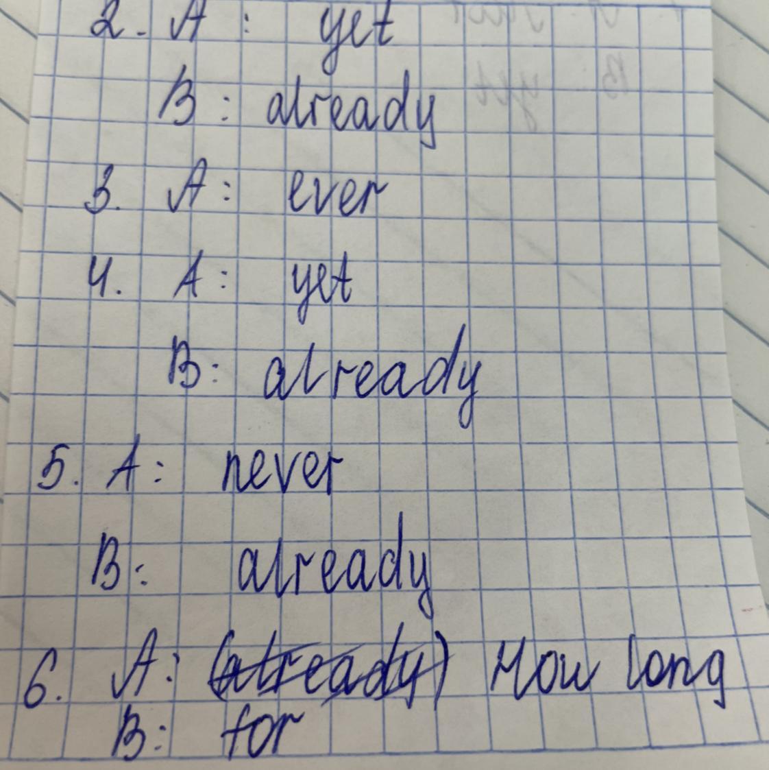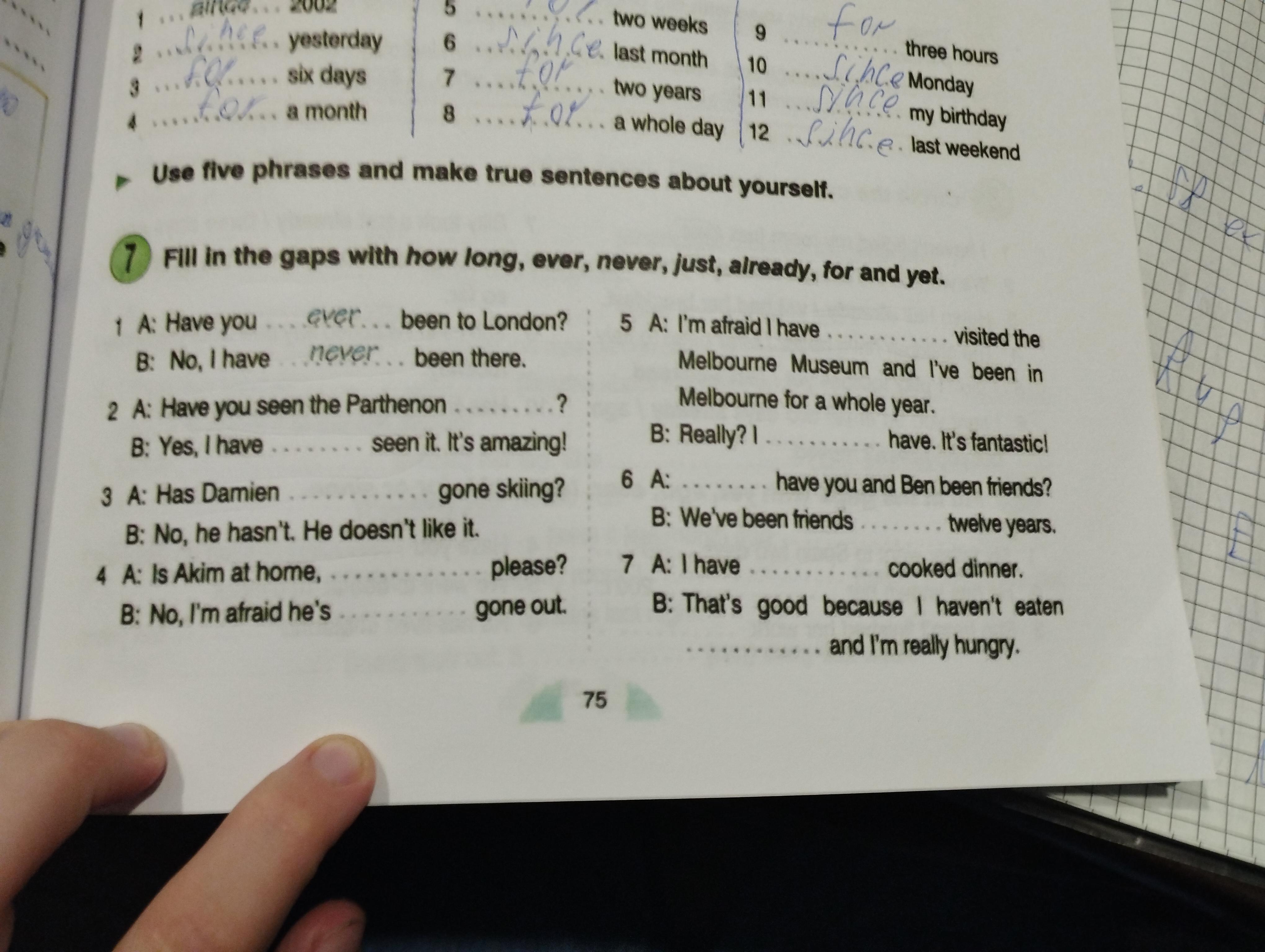 7 упражнение. Нужно вставить на место пропусков how long, ever, never, just, already, for или yet
