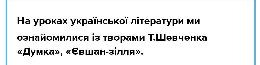 8. Виправте речення і запишіть правильне твердження. На уроках української літератури ми ознайомилися із творами Т.Шевченка «Думка», «Джури козака Швайки», «Іван Підкова», «Євшан-зілля».