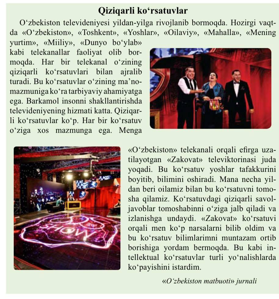 3 Ozbekistan telekanali orqali efrida uzati layoutan"" kalai ?