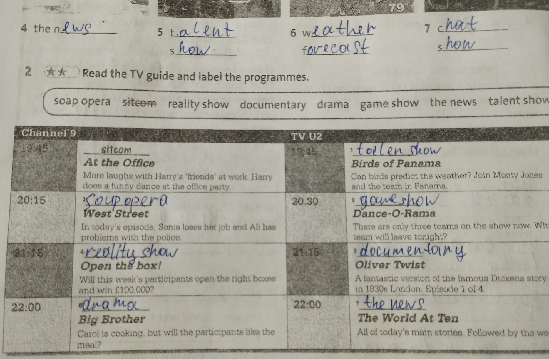 2 ★★ Read the TV guide and label the programmes.