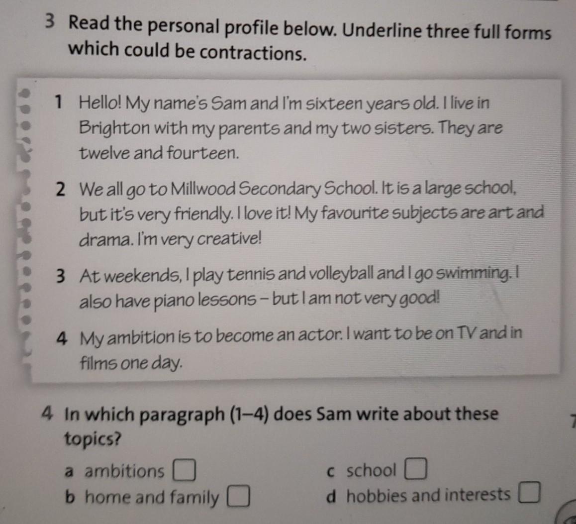 Contractions: They are - they're; It is - it's; Am not - ain't