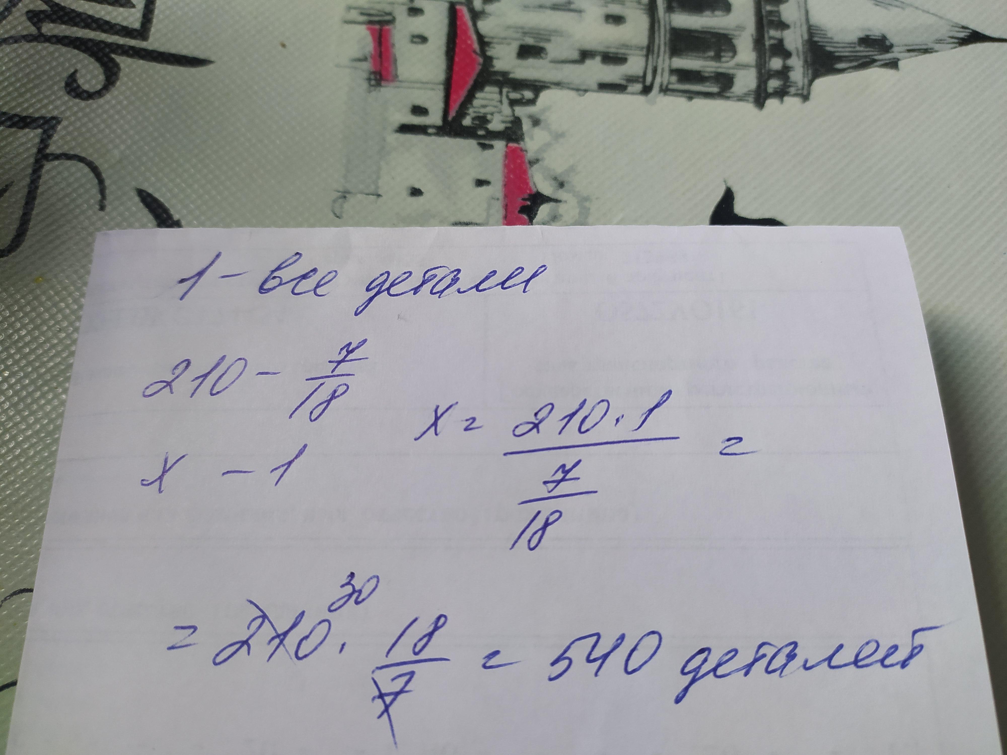 Робітник виготовив 210 деталей що становить 7/18 усього завдання скільки деталей має виготовити робітник?