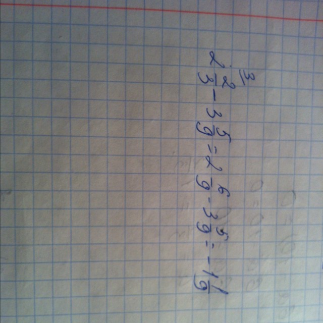 2 целых две третьих - 3 целых пять девятых=?