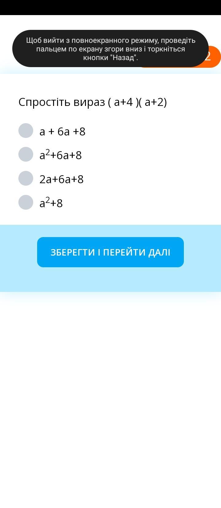 Спростіть вираз ( а+4 )( а+2) ось варіанти відповідей .быстрее ОН НА ВРЕМЯ